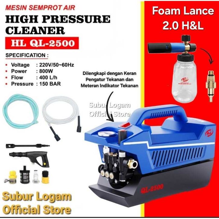 (Paket) H&L QL 2500 Jet Cleaner (Selang 10 Meter) + 2.0 Foam Lance H&L