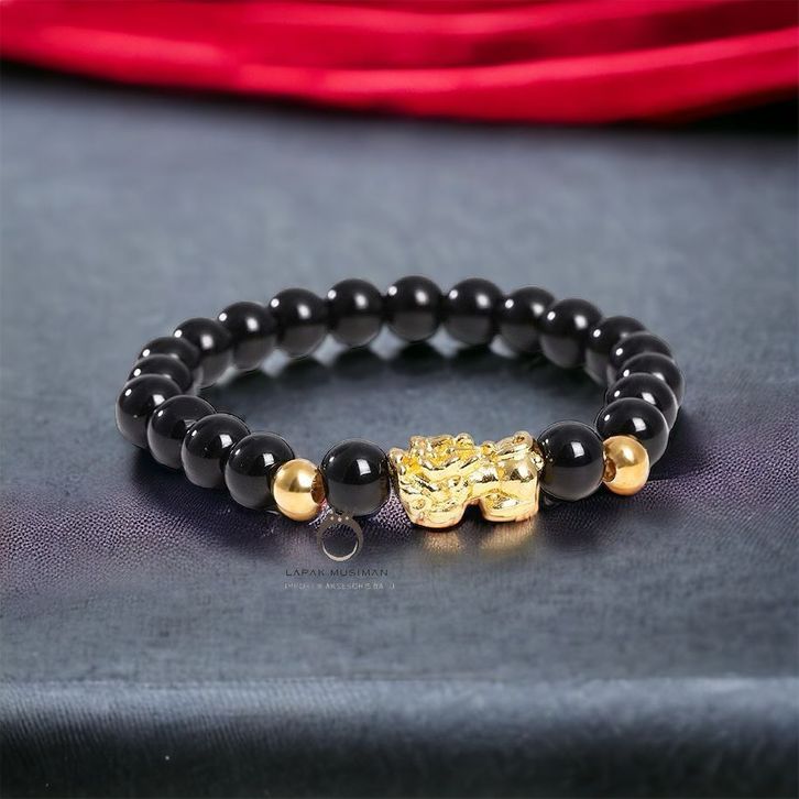 GELANG PRIA WANITA BATU BLACK ONYX ASLI NATURAL KOMBINASI PIXIU