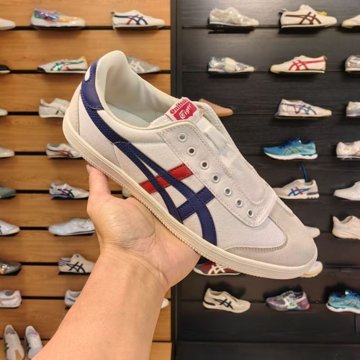SEPATU ONITSUKA TOKUTEN SLIP ON WHITE NAVY RED FREE PAPERBAG