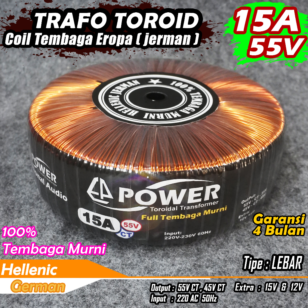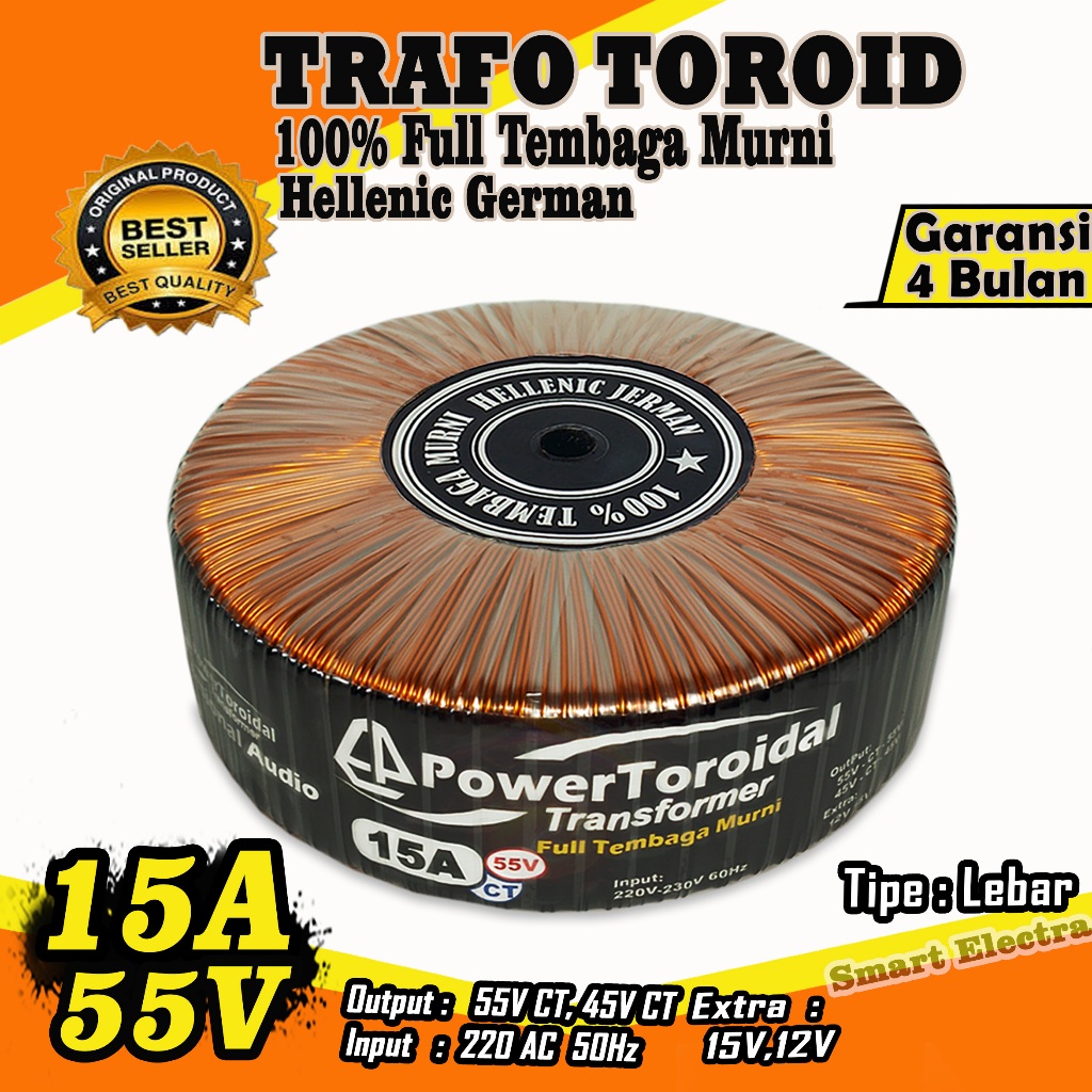 Trafo Toroid 15A 55V CT - 45V CT MURNI Full Tembaga Murni Hellenic Jerman