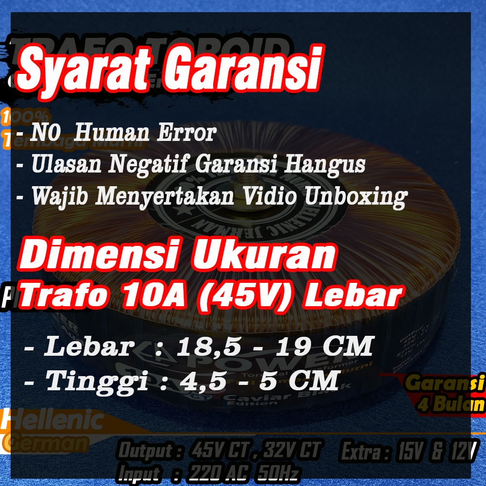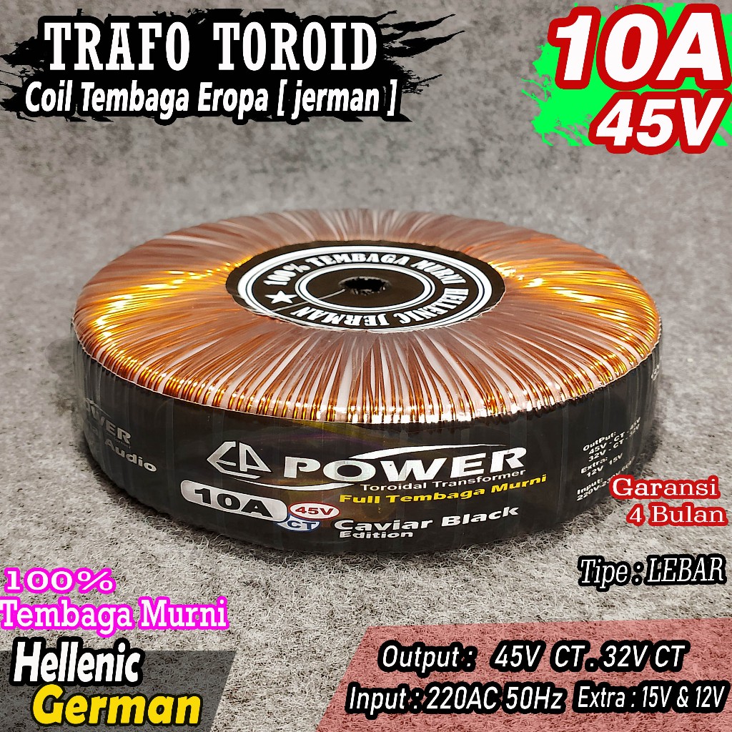 Trafo Toroid 10A 45V CT 32V CT MURNI Full Tembaga Murni Hellenic German Caviar Black