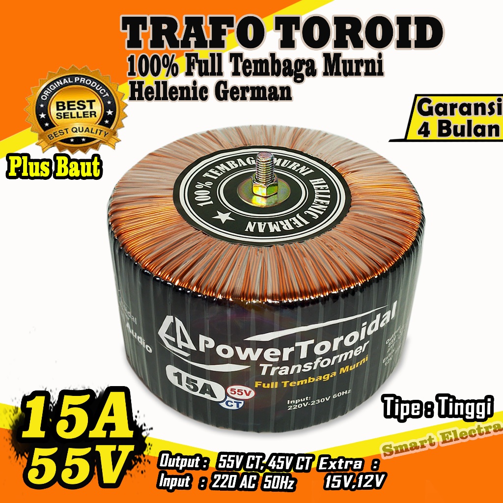 Trafo Toroid 15A 55V CT - 45V CT MURNI Full Tembaga Murni Hellenic Jerman
