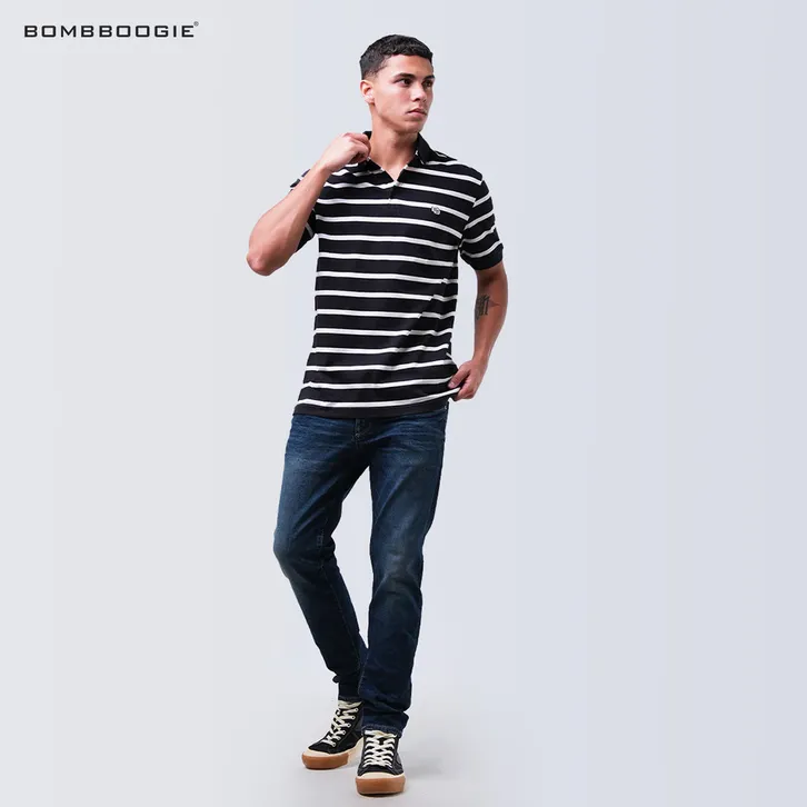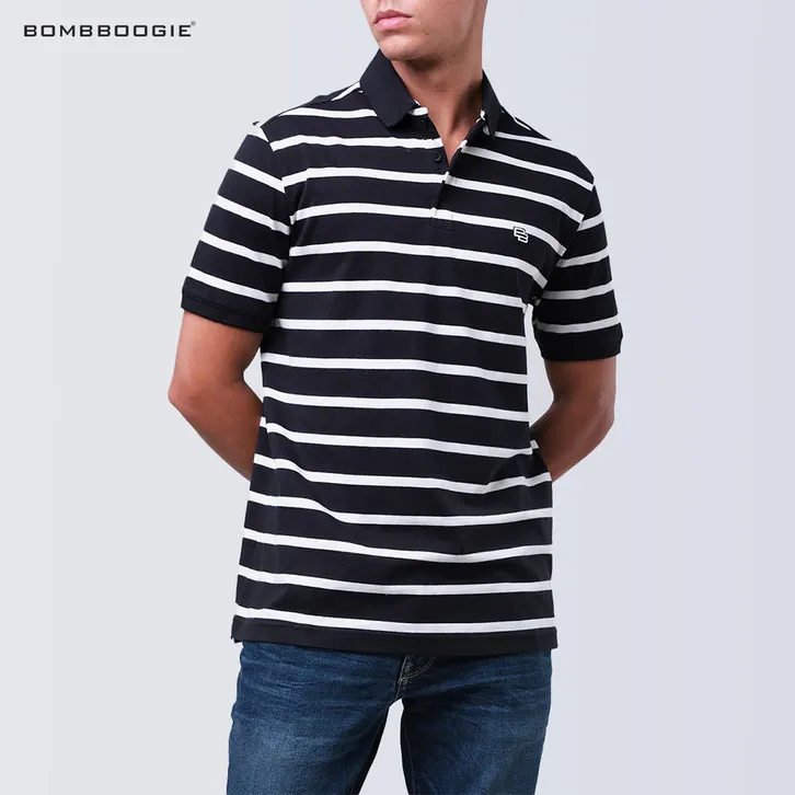 Kaos Polo Pria Bombboogie Val da Black Offwhite Stripe 12E81B4BS Model Terbaru