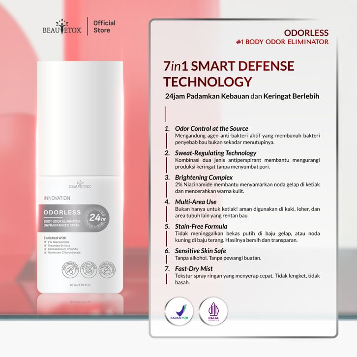 Deodorant BUY 1 GET 1 Beautetox odorless Deodorant Spray Unfragrance Mencerahkan Niacinamide Pencerah Memudarkan Ketiak