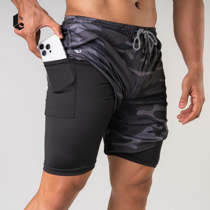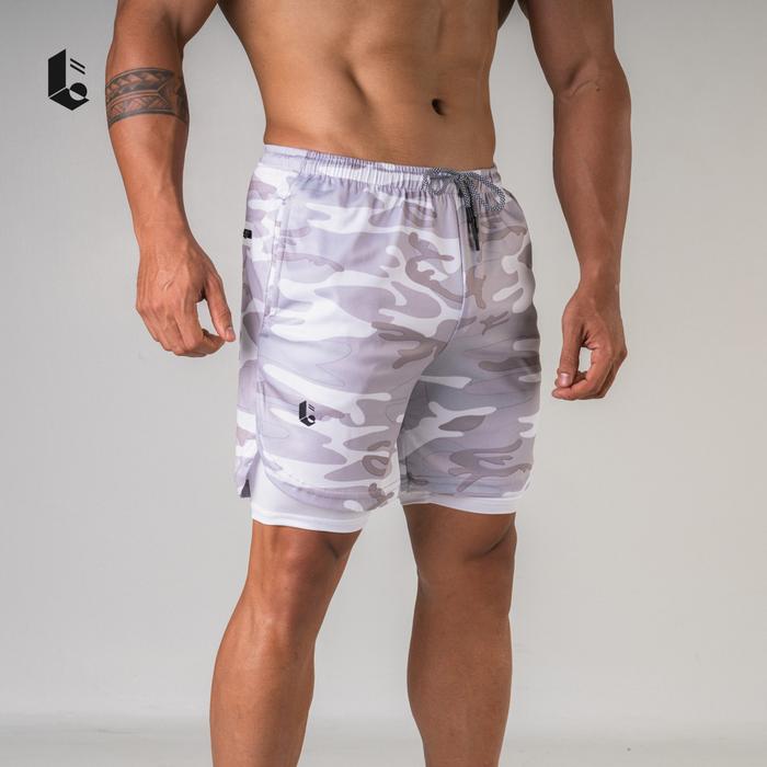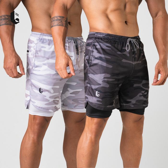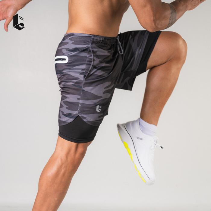Celana Pendek Legging Manset 2 in 1 Olahraga Compression Pants Pria - Abu Terang M
