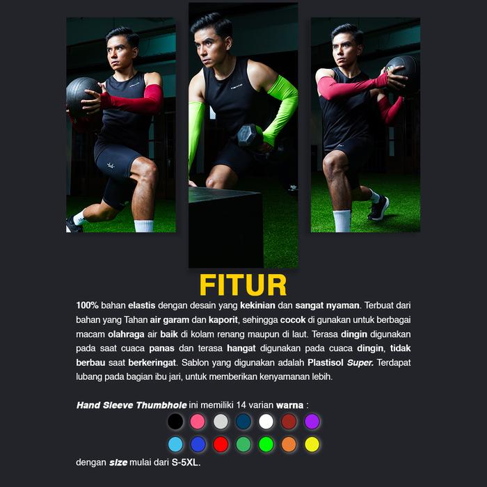 Tiento Hand Sleeve Thumbhole Arm Sleeve Manset Tangan Lengan Big Size Pria Original - BLACK XXL