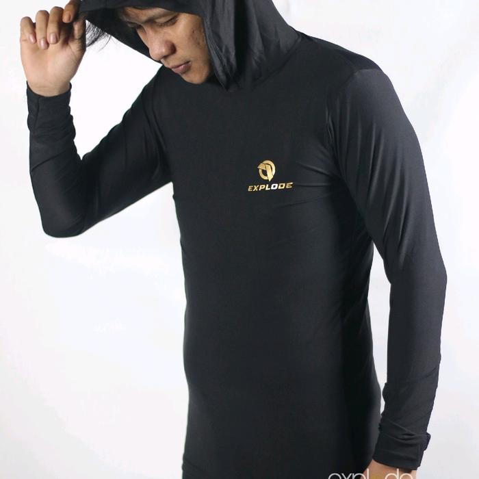 baselayer hoodie/manset badan pria dan wanita olahraga sport/BASELAYER EXPLODE - Hitam S