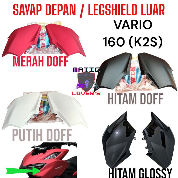 Cover Body Legshield luar sayap depan samping honda vario 160 new k2S warna hitam, putih doff, hitam doff, merah doff, b
