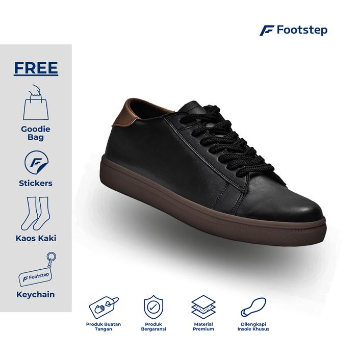 Sepatu Cowok Footstep Alter Black Solegum Casual Shoes Pria Sneakers Snekers Hitam Kerja