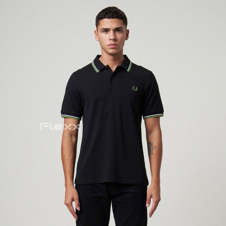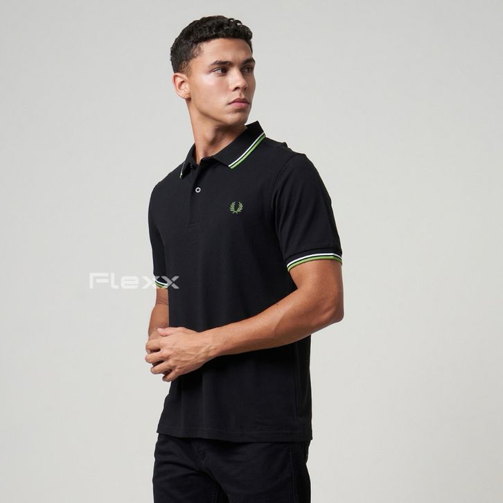 Fred Perry Twin Tipped Polo Shirt Black Green White 100 Original