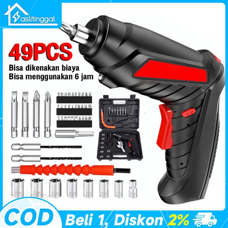 Cordless Screwdriver 4.2 V Mesin bor baterai impact cordless drill 49 pcs Set Screwdriver Baterai Bor mini