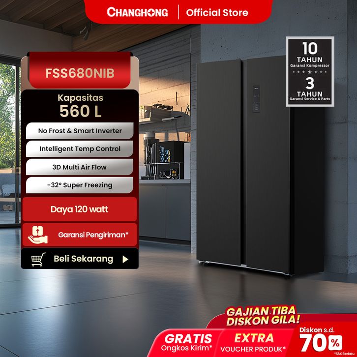 CHANGHONG Kulkas 2 Pintu Side by Side FSS680NIB [560 L] (Kulkas ) (Kulkas Anti Bunga Es)