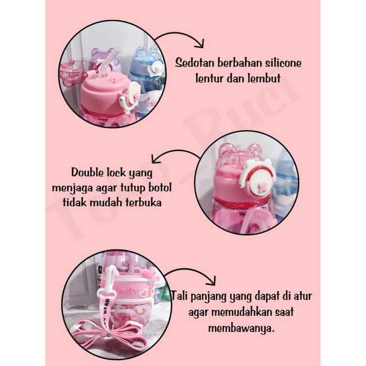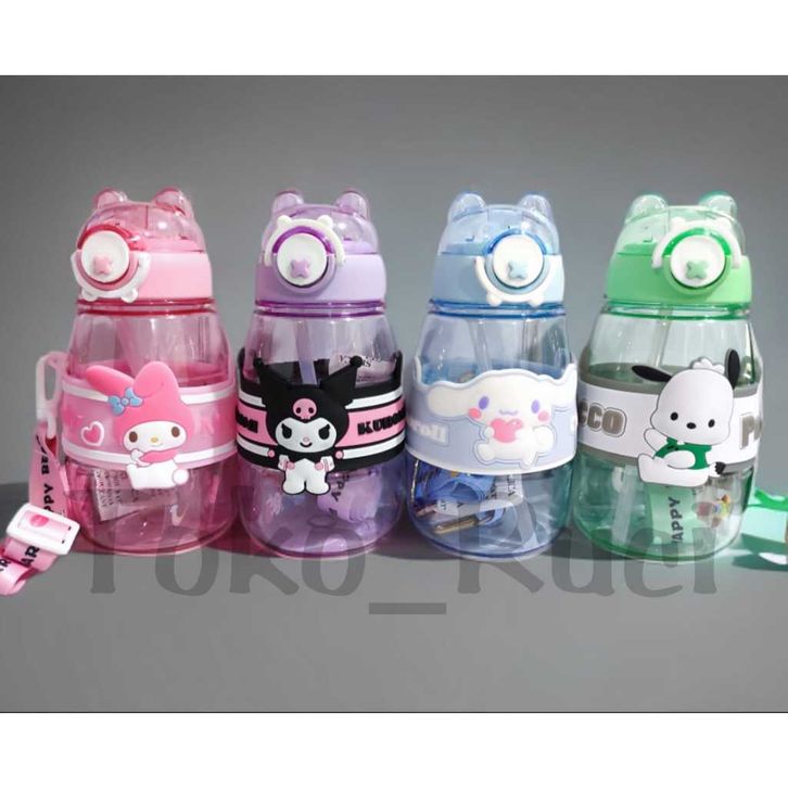 Botol Minum Anak Motif Samrio Karakter Lucu Ukuran 600ml Sedotan + Tali BOTOL 130-3 741