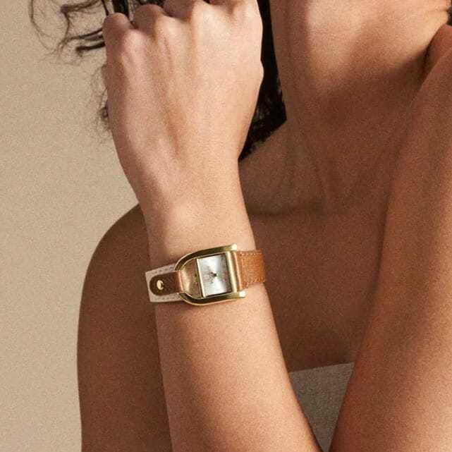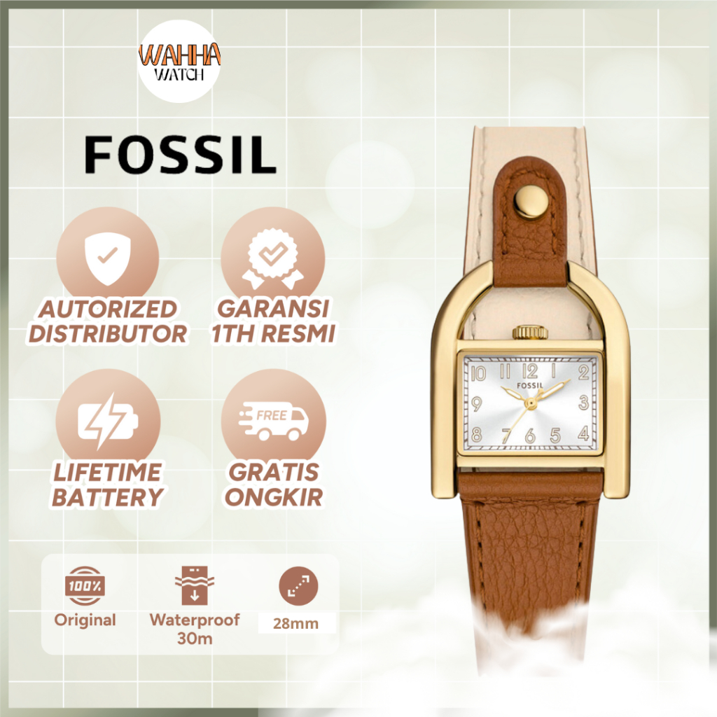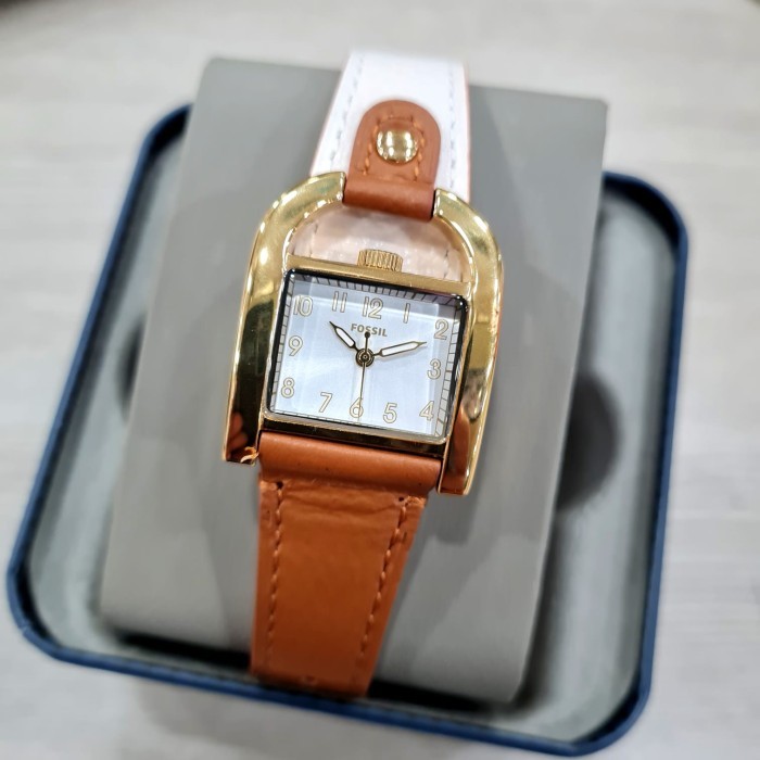 Jam Tangan Harwell ES5346 Ladies White Dial Brown White Leather Strap [BERGARANSI]