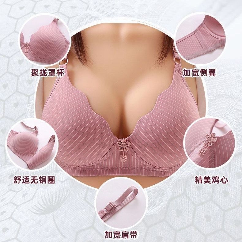 Bra Push Up Ukuran Besar Busa Tipis Motif Garis Bh Wanita Tanpa Kawat Big Size Tali Tebal Elastis