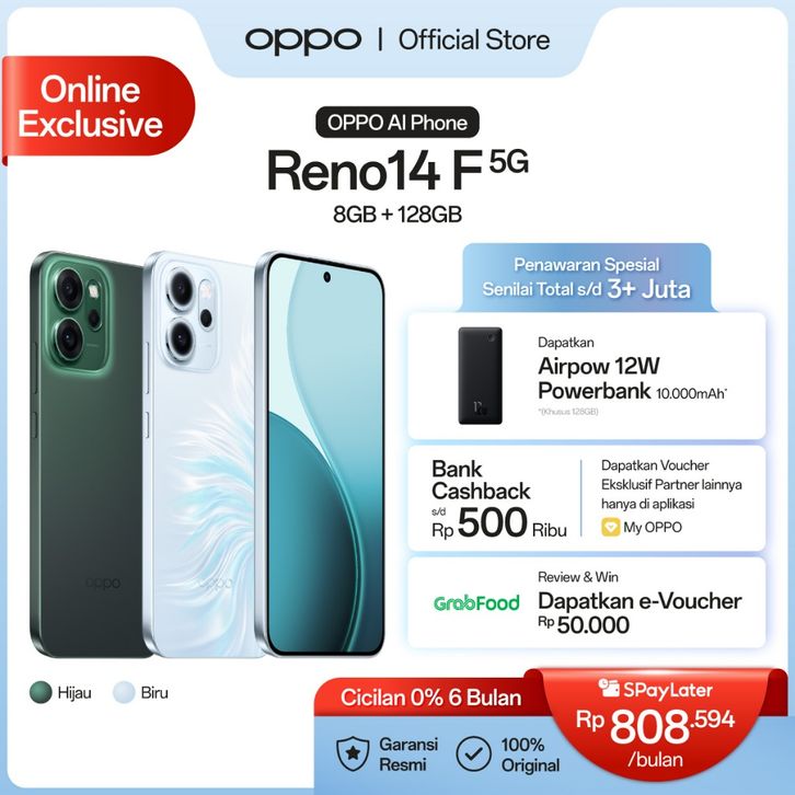 OP PO Reno14 F 5G 8GB+128GB [IP69 Underwater 4K Photography, 6000mAh Battery, AI Livephoto 2.0]