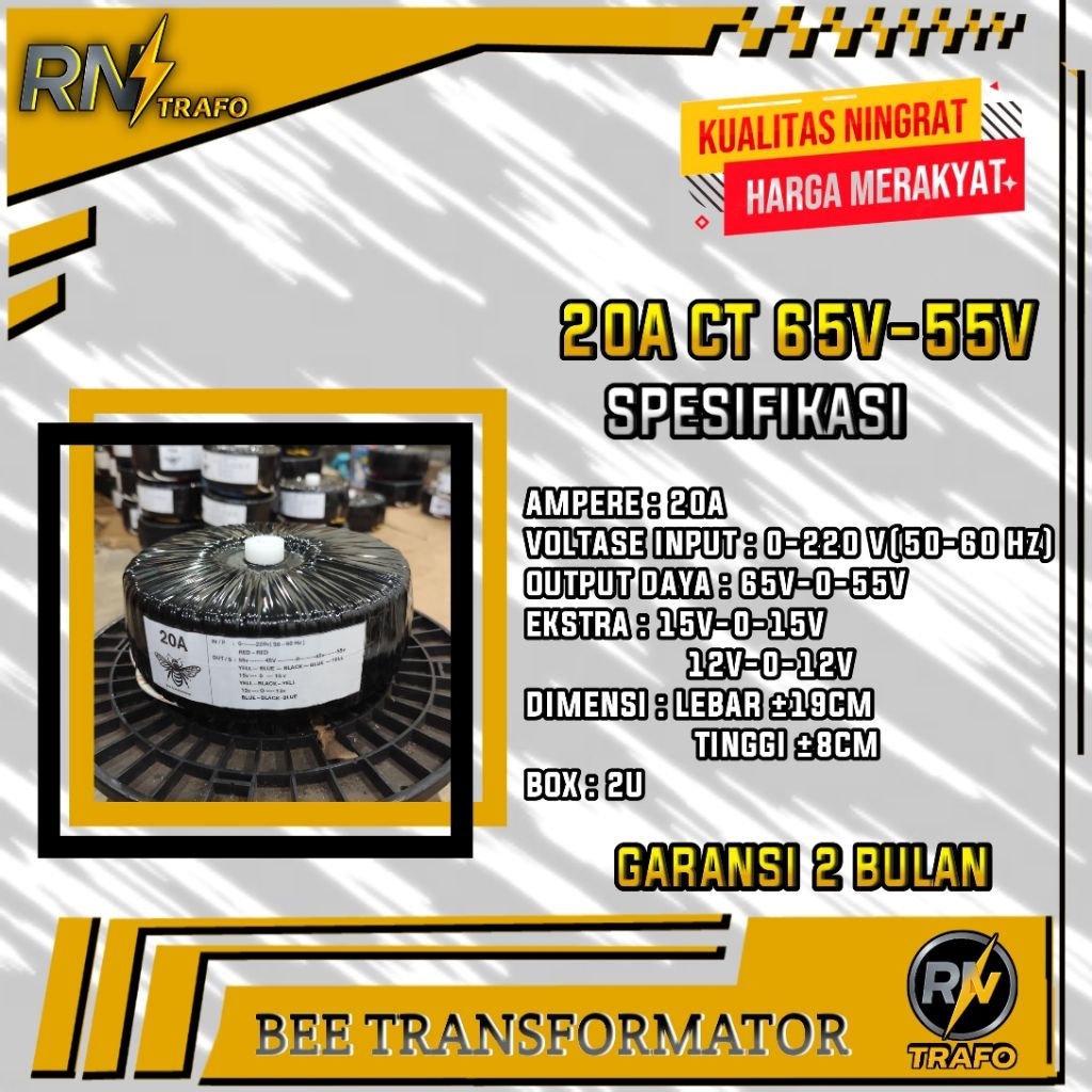 TRAFO TOROID DONAT 20A CT 65v-55v (FREE BAUT)