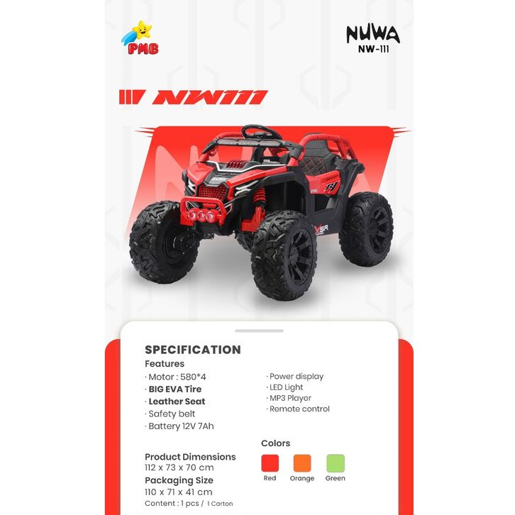 Mainan Mobil Aki Anak PMB NUWA NW 111 NW111 NW-111 BIG SIZE EVA WHEEL RODA BESAR KARET EVA MURAH