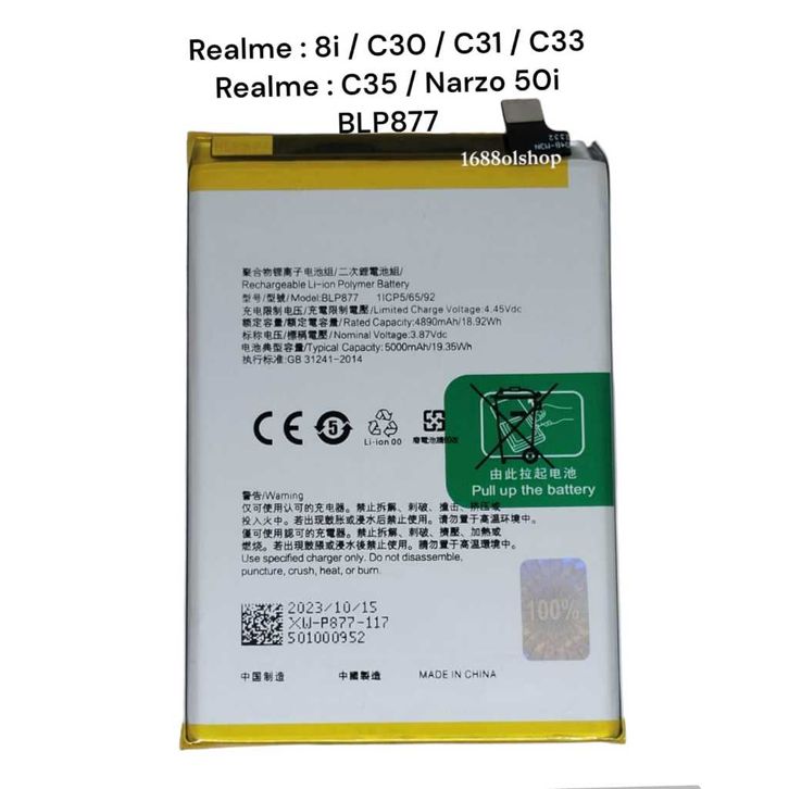 Baterai BLP877 Realme 8i C30 C31 C33 C35 Narzo 50i BLP 877 Battery Batre Batrai Batere Aksesoris Hp