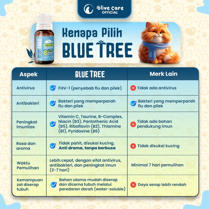 Vitamin Obat Kucing BLUE TREE Cold & Flu dengan 8 Bahan Aktif Immune Booster untuk Mengatasi Sakit Flu & Pile