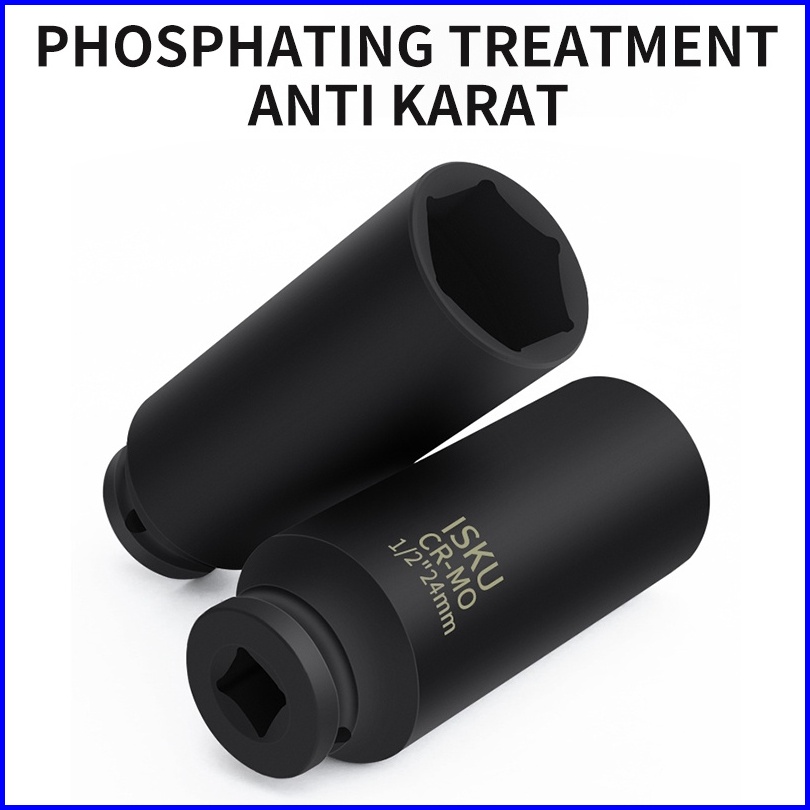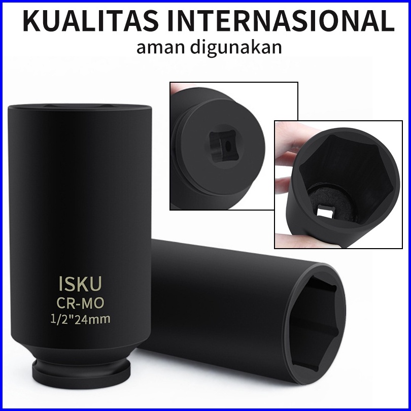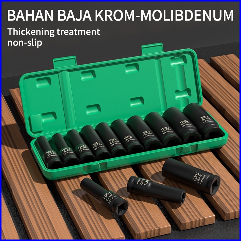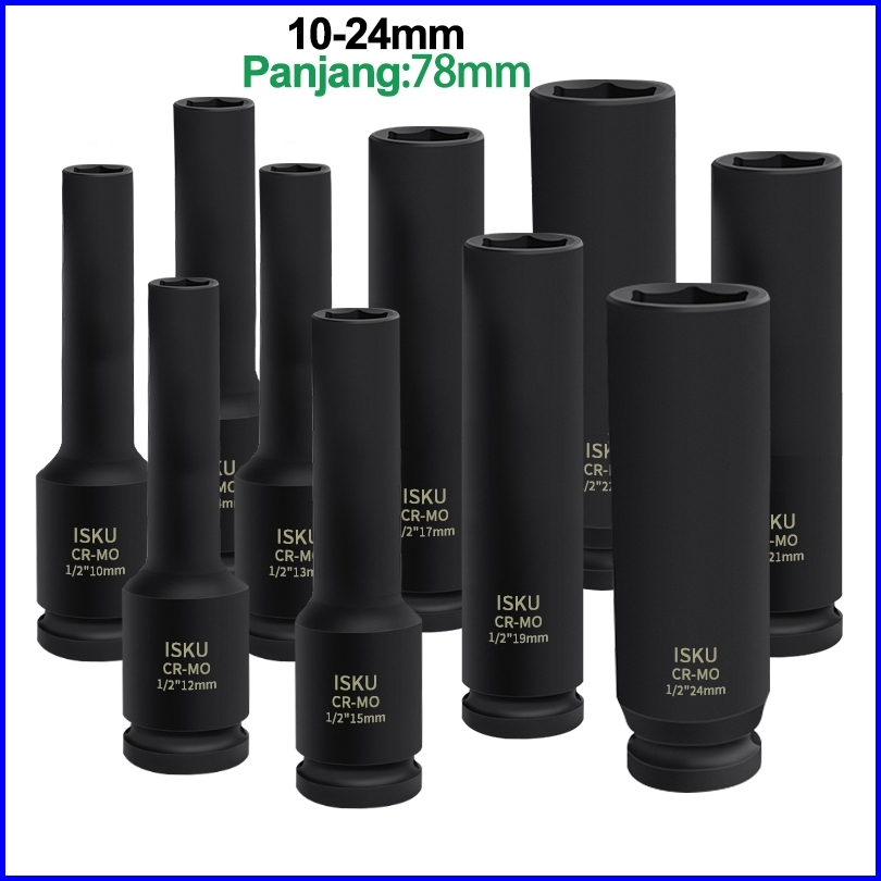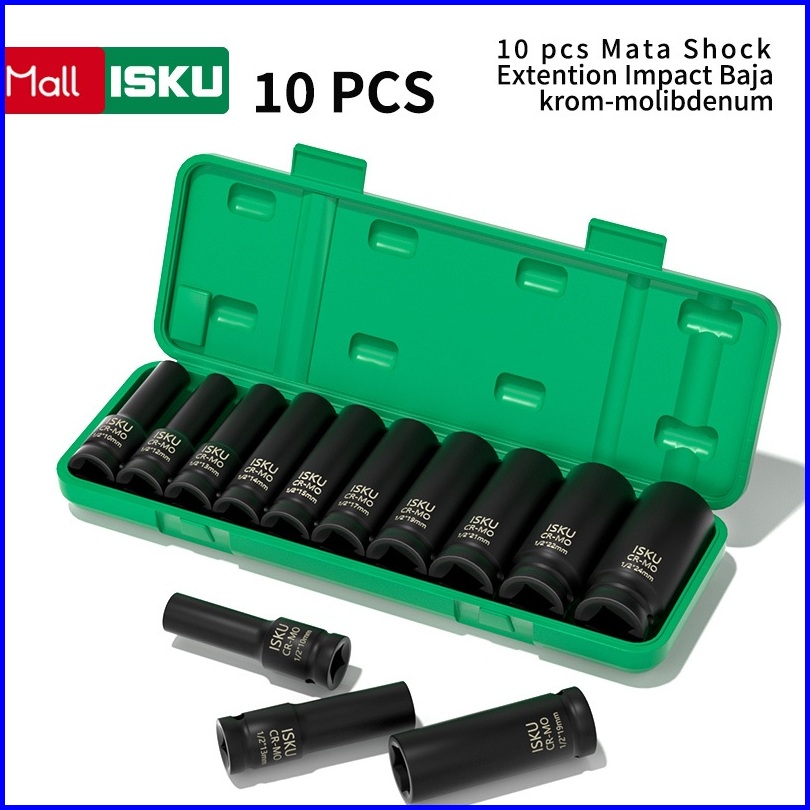 Isku Kunci Socket Extention Impact 10pcs Bahan Cr-mo Panjang Mata Sock Impact 1 2 6pt 10-24mm Kunci Mata Shock Impact