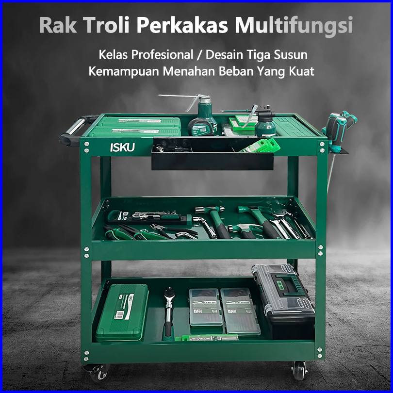 Isku Trollies Bengkel Rak 3 Susun Trolly Trolley Perkakas Tools Tool Cart Rak Alat Perkakas Trolly Galon Trolley Alat Ke