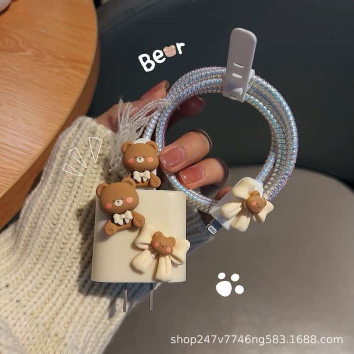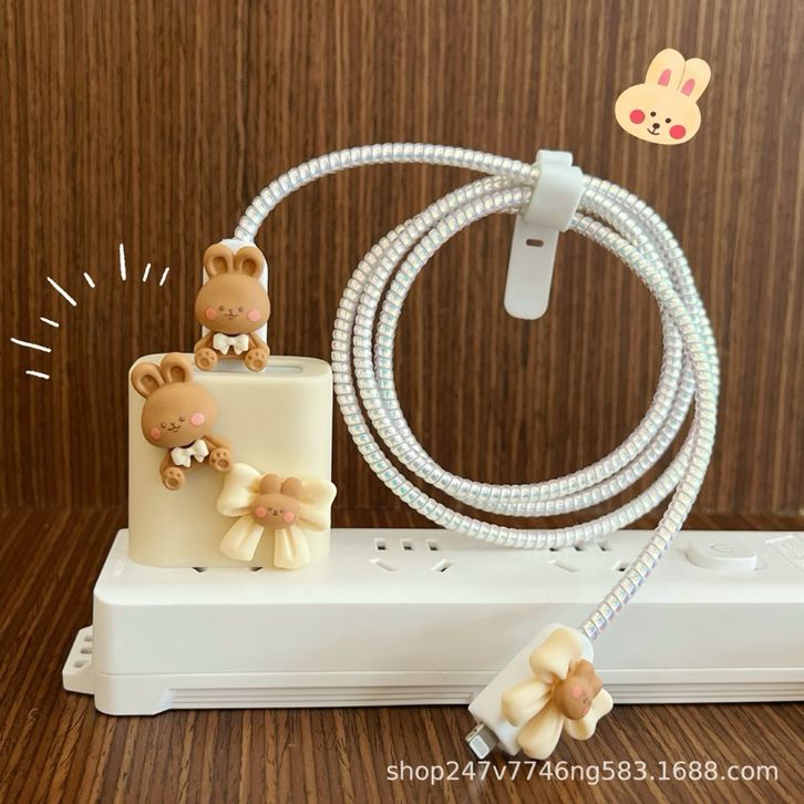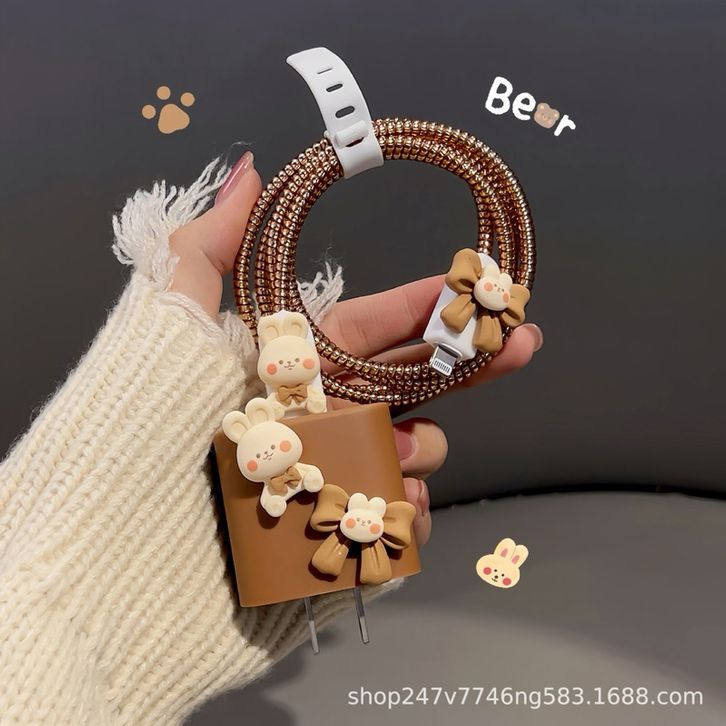 Bear & Bunny Softcase Pelindung Kabel Cas HP Lucu Cable Charger Protector for iphone