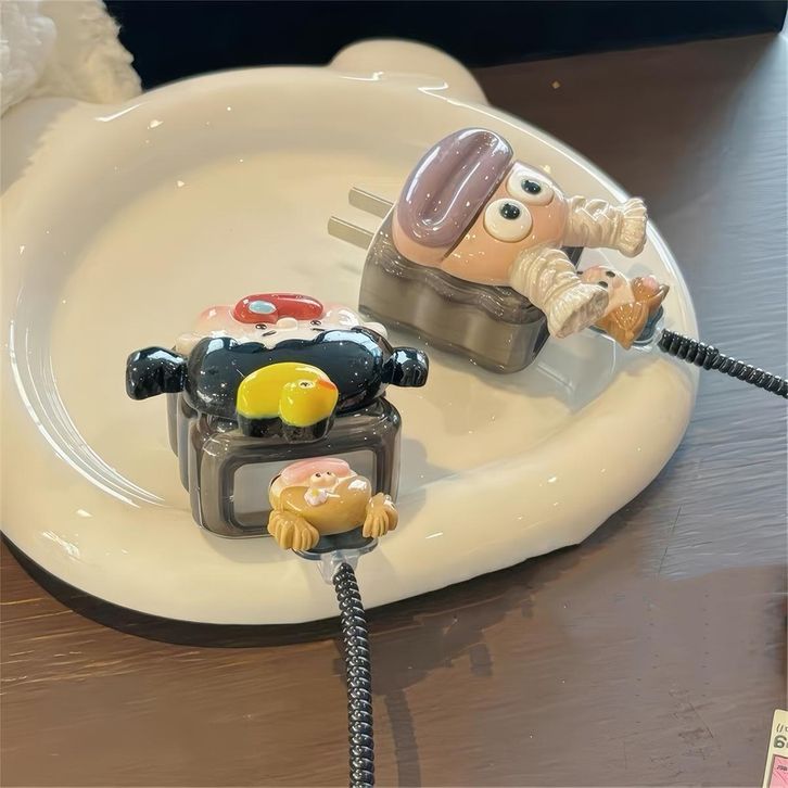 【Mulut besar kepang ganda】Pelindung Charger iPhone 18w&20w Kartun Pelindung Kabel Kepala Charger Iphone Pelindung Adapt