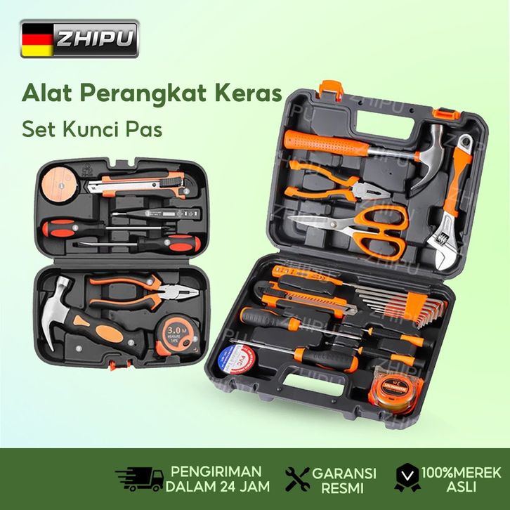【】ZHIPU Set Perkakas 9 in 1 Toolbox Obeng Kunci L Perlengkapan Kunci Kunci Tool Box Set Perkakas Palu Tang Obeng Kunci