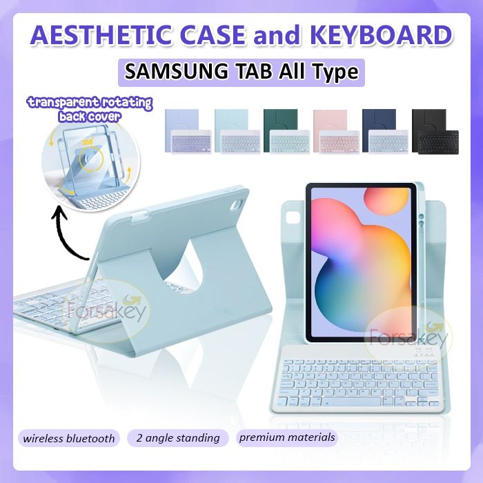 Keyboard + Rotating Acrylic Case Tablet Samsung Galaxy Tab A9+ A9 Plus A8 S9 FE Plus S9+ FE+ S6 Lite 10.4 11 12.4 8.7 I