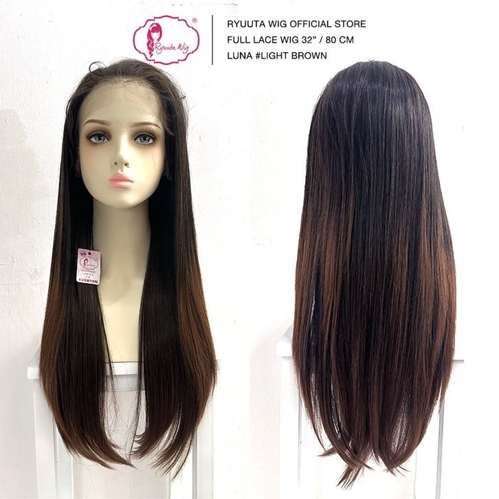 Ryuuta Wig Full Lace Hand Tied Wig Luna Hitam Coklat 32 inch 80cm