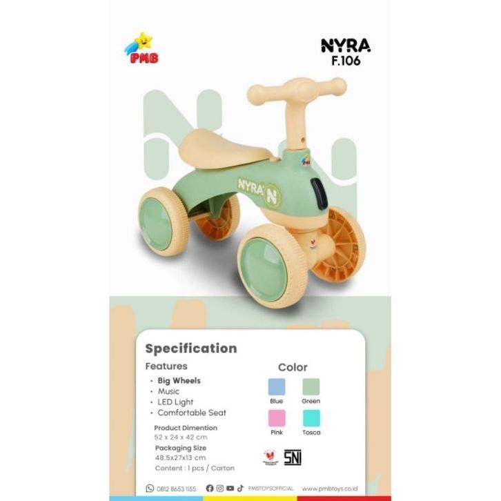 MAINAN ANAK SEPEDA KESEIMBANGAN RIDE ON PMB F106 NYRA / F107 PEAK/F108 CUTE F109 F105 IORA