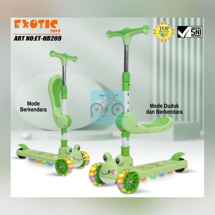 Scooter Skuter Otoped Anak HB 209 Exotic Motif Kodok Bangku Duduk Lipat Lampu Musik High Quality