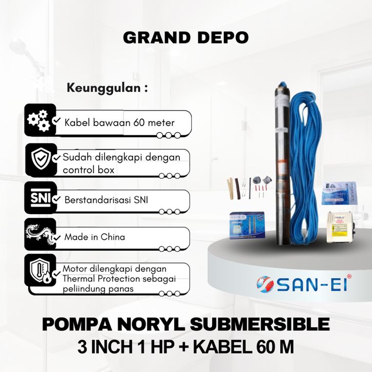 San Ei Pompa Air Satelit 3 inch 1 HP + Kabel 60 Meter Noryl / Pompa Submersible San Ei