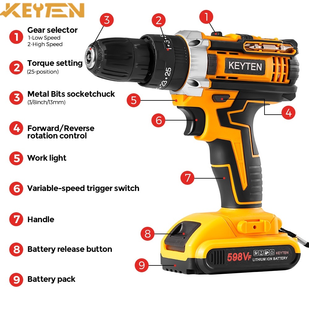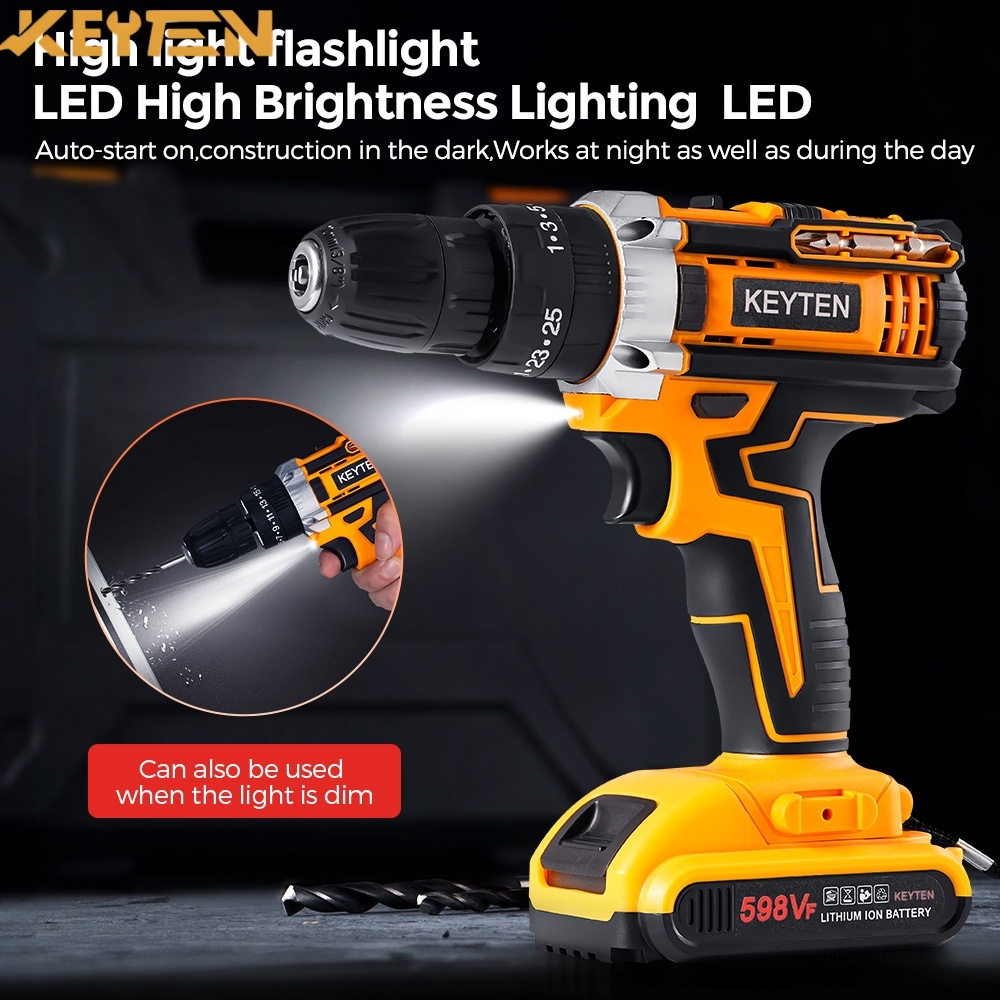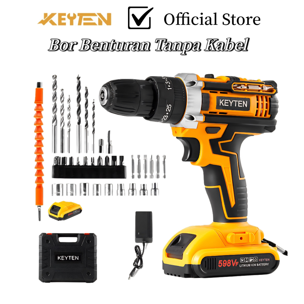 KEYTEN Bor Dampak Nrkbl Set Alat Listrik Sekrup Palu Nrkbl 598VF Cordless Impact Drill