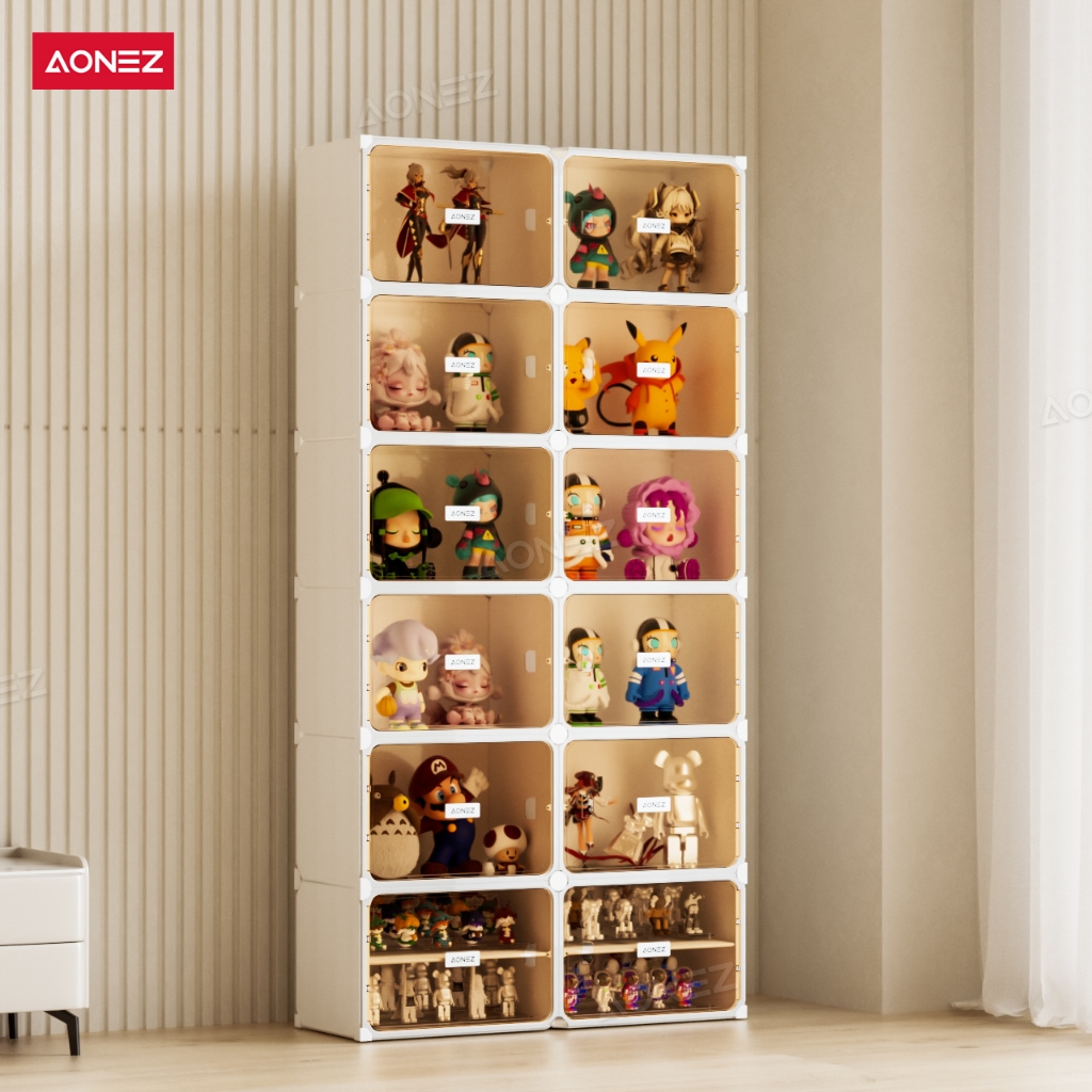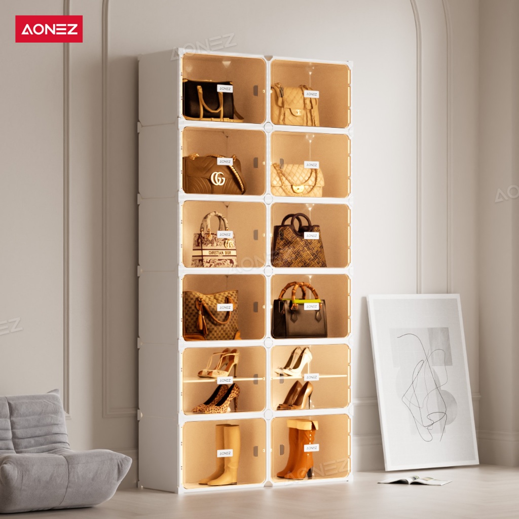 AONEZ Rak Sepatu Tertutup 6 Slot - Lemari Sepatu Transparan Anti Debu untuk Penyimpanan Sepatu dan Tas di Rumah