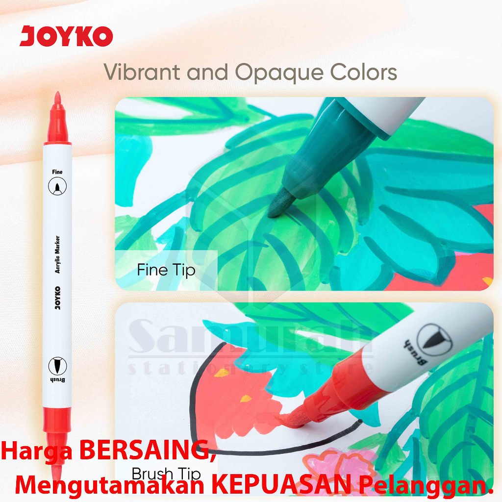 Spidol Akrylik Marker Joyko MK 68 12 Warna / rylic Marker 12 Colours Dual Tip Fine - Brush / Penanda Warna