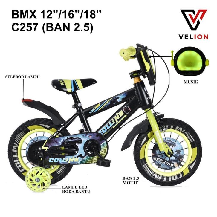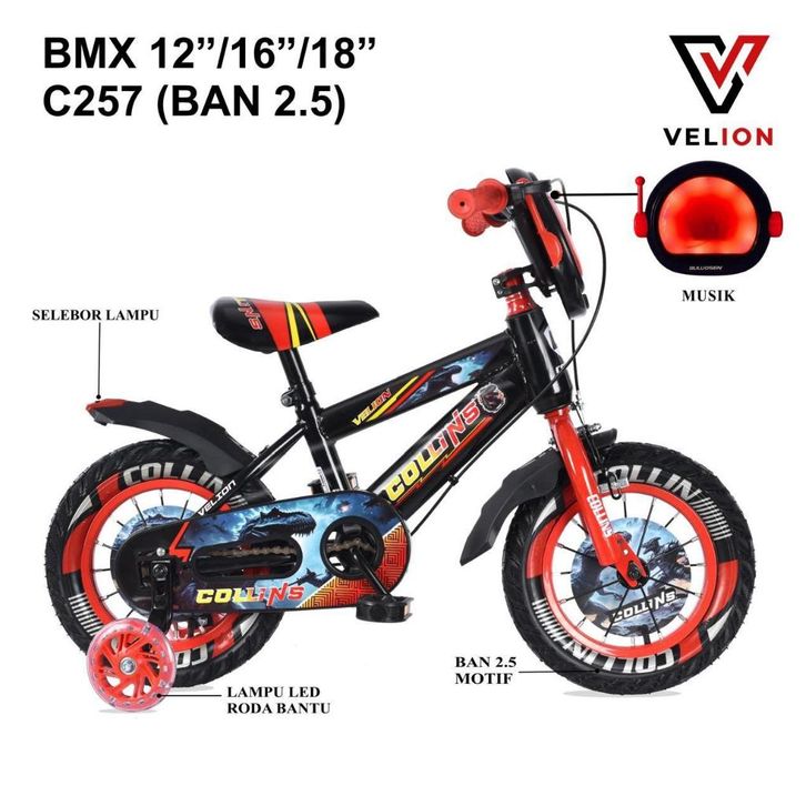 SEPEDA Velion COLLINS - SALVO C254 BMX 12" - 16" - 18" fitur TAMENG dengan MUsik dan lampu ban jumbo