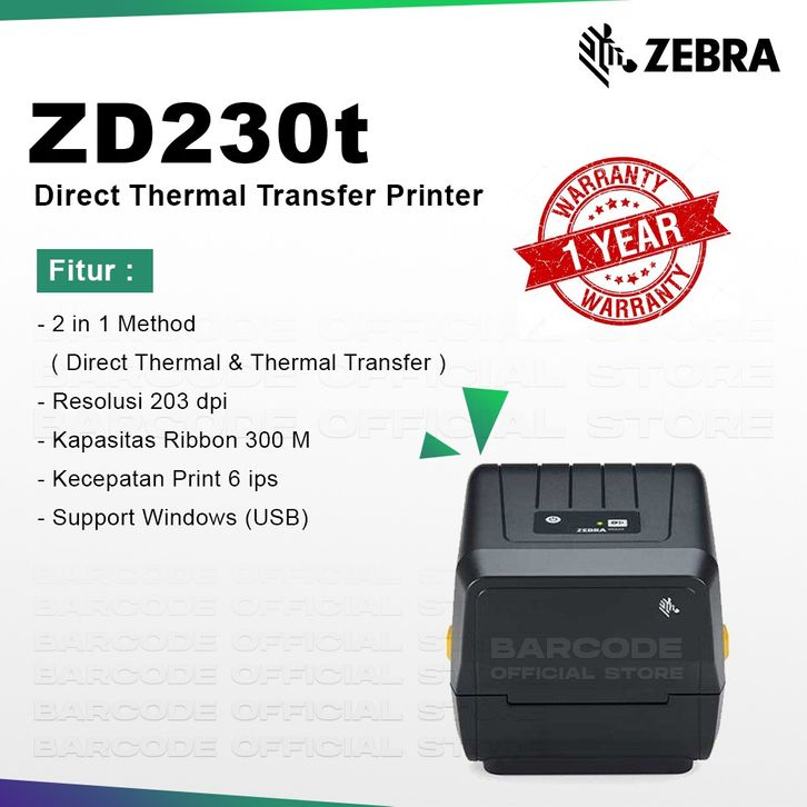 Zebra ZD230 / ZD230t Printer Direct Thermal Transfer 203 DPI 4 IPS Port USB