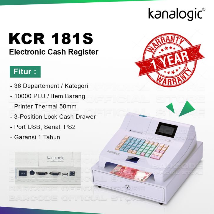 Mesin Kasir Elektronik Standalone Kanalogic KCR-181S 36 Department Siap Pakai