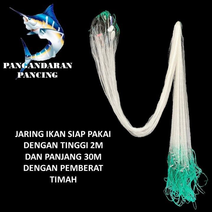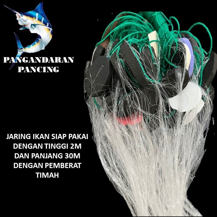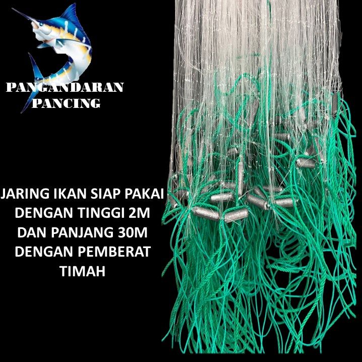 Jaring Ikan Siap Pakai Tinggi 2m Panjang 30m timah