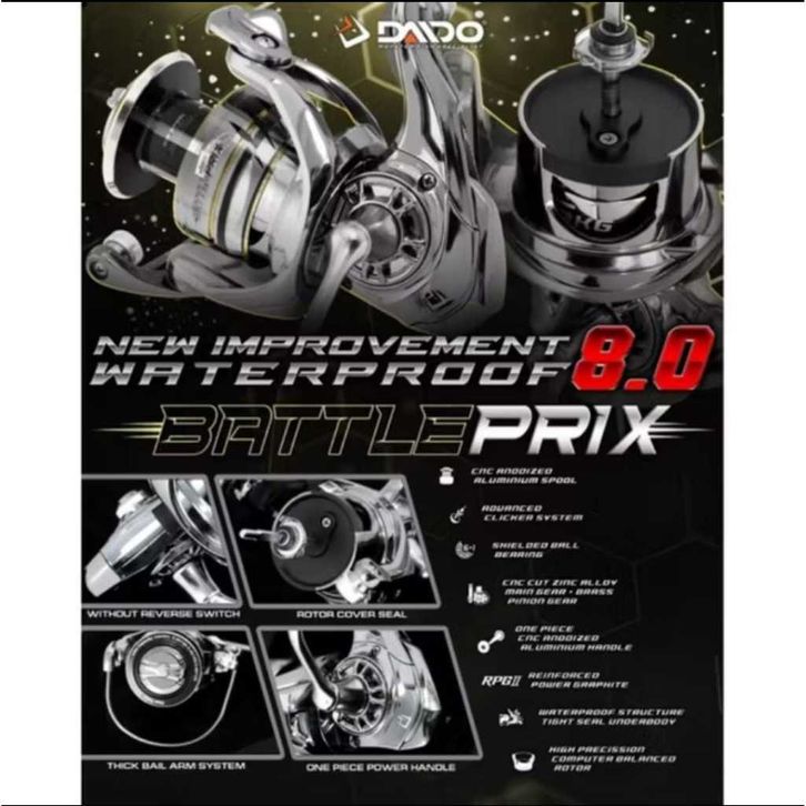 REEL DAIDO BATTLE PRIX 8.0 Waterproof BEARING ALUMUNIUM SPOOL 1000 SAMPAI 6000