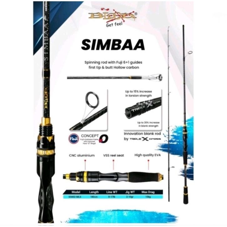 Joran Pancing Blood Simbaa 602 miliS 8-17lb Ring Full Fuji