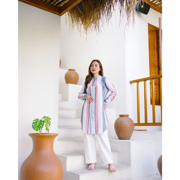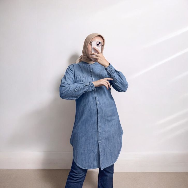 [Star] Promo Anyostore AT68 Kemeja Tunik Salur Denim Wanita Tanpa DP Termurah!!
