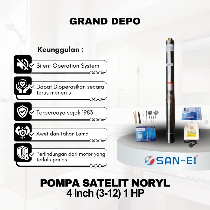 San Ei Pompa Air Satelit 4 inch (3-12) 1 HP Noryl / Pompa Submersible San Ei