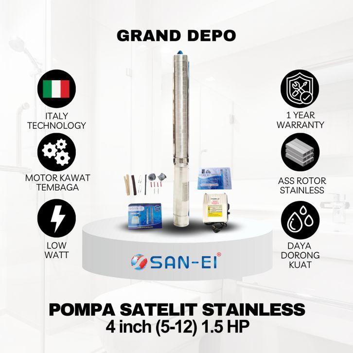 San Ei Pompa Air Satelit 4 inch (5-12) 1.5 HP Stainless / Pompa Submersible San Ei