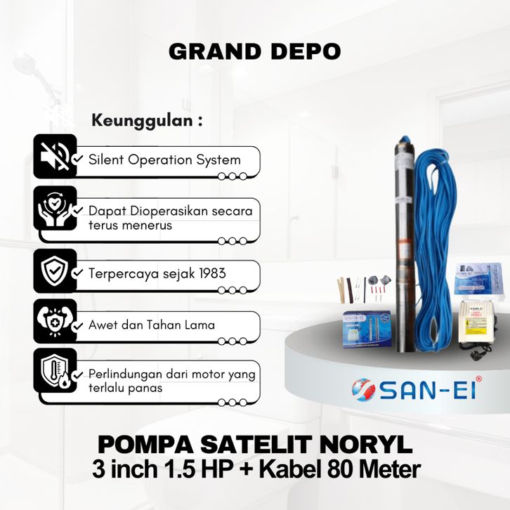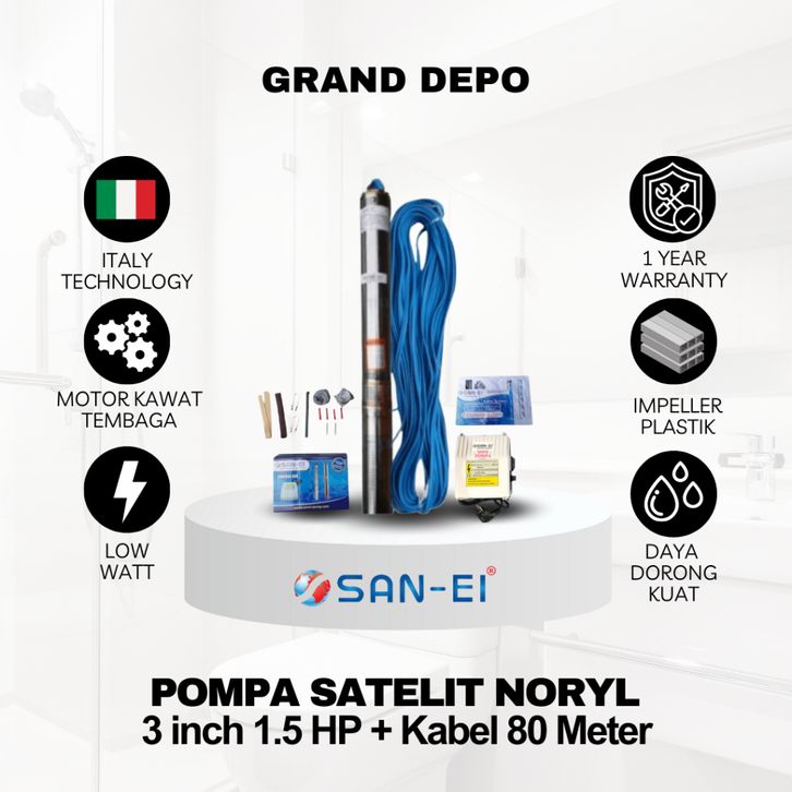 San Ei Pompa Air Satelit 3 inch 1.5 HP + Kabel 80 Meter Noryl / Pompa Submersible San Ei