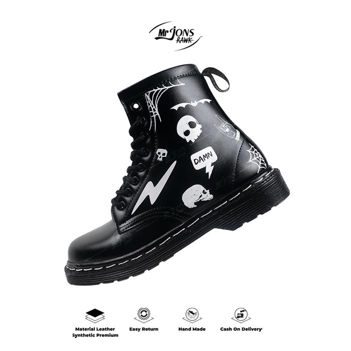 Mr.Jonsrawk Original Sepatu Boots Pria Wanita Leather Shoes Model High Boot 8 Hole Bermotif