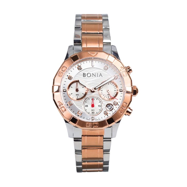 Jam Tangan Wanita BONIA Chronograph 2Tone - s1lv3r Dial BR193-2617C Original
