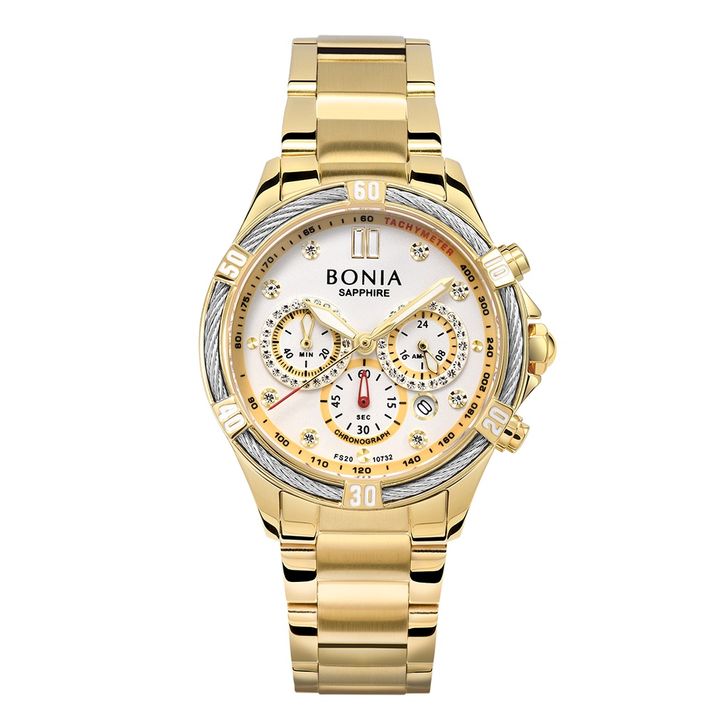 Jam Tangan Wanita Bonia Chronograph White Dial Stainless Steel Analog B10732-2217C Original